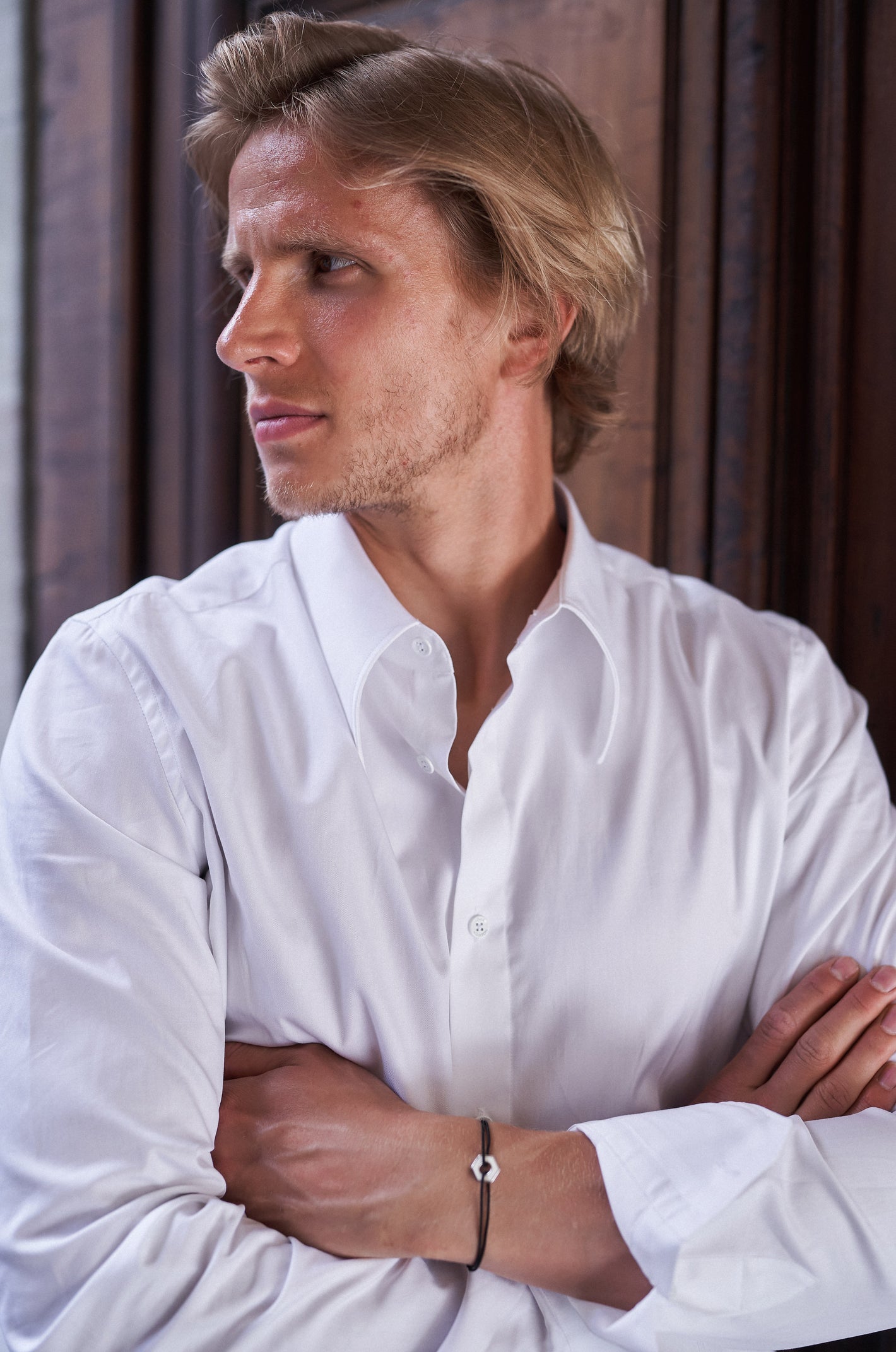 Bracelet collection "Ecrou" bicolore émaillé blanc et noir monté sur cordon pour hommes et femmes.
